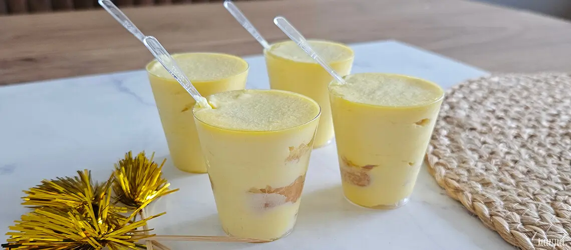 - Dip de lange vingers 1 voor 1 in het citroenmengsel (1 lange vinger per glaasje). Zorg dat het het citroenmengsel goed geabsorbeerd heeft.